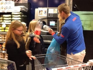 Na ruim een half uur hadden we alle flessen door het apparaat gedaan en dat leverde een prachtig bedrag op. Met alle geldelijke bijdrages erbij komen op een bedrag dat meer was dan we van te voren hadden mogen dromen.