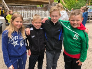 We zitten in de bus. We kunnen terugkijken op Een mooie dag, lekker weer, veel gezelligheid!